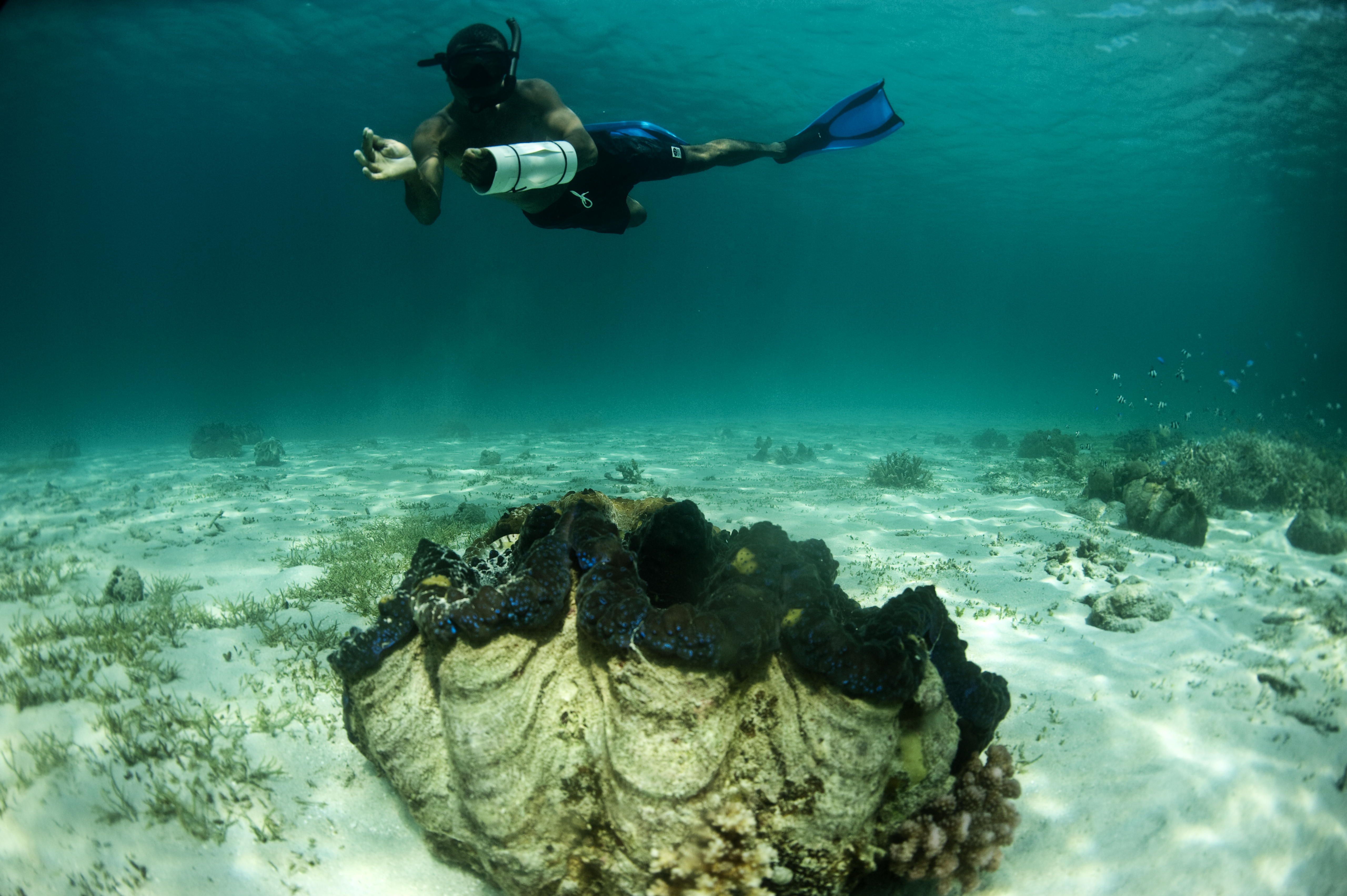 Conducting a reef transect in the Marine Protected Area in Nuakata, Milne Bay Province, Papua New Guinea