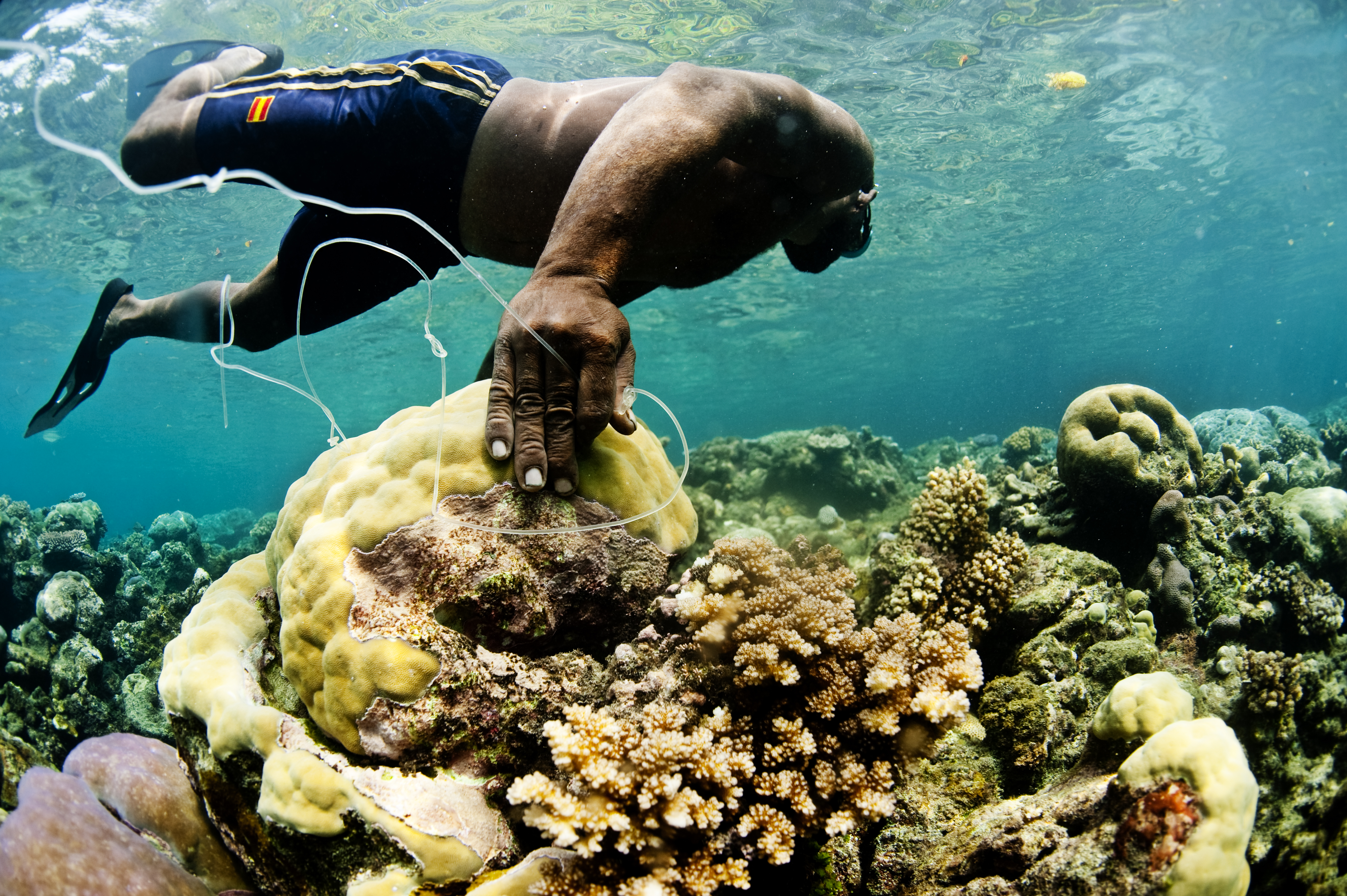 A local ranger freedives in Gizo, Western Province, Solomon Islands