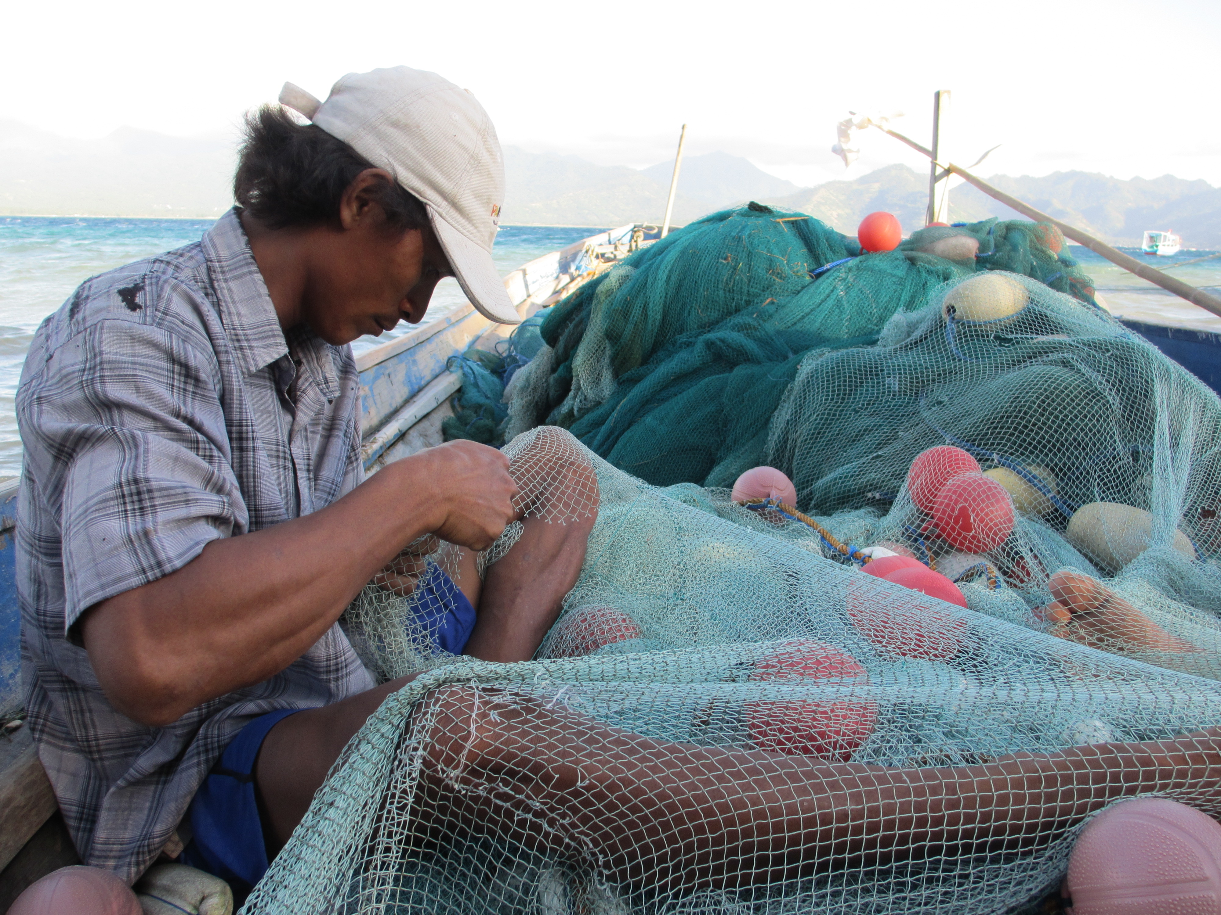 A fisherman is fixing his net at Gili